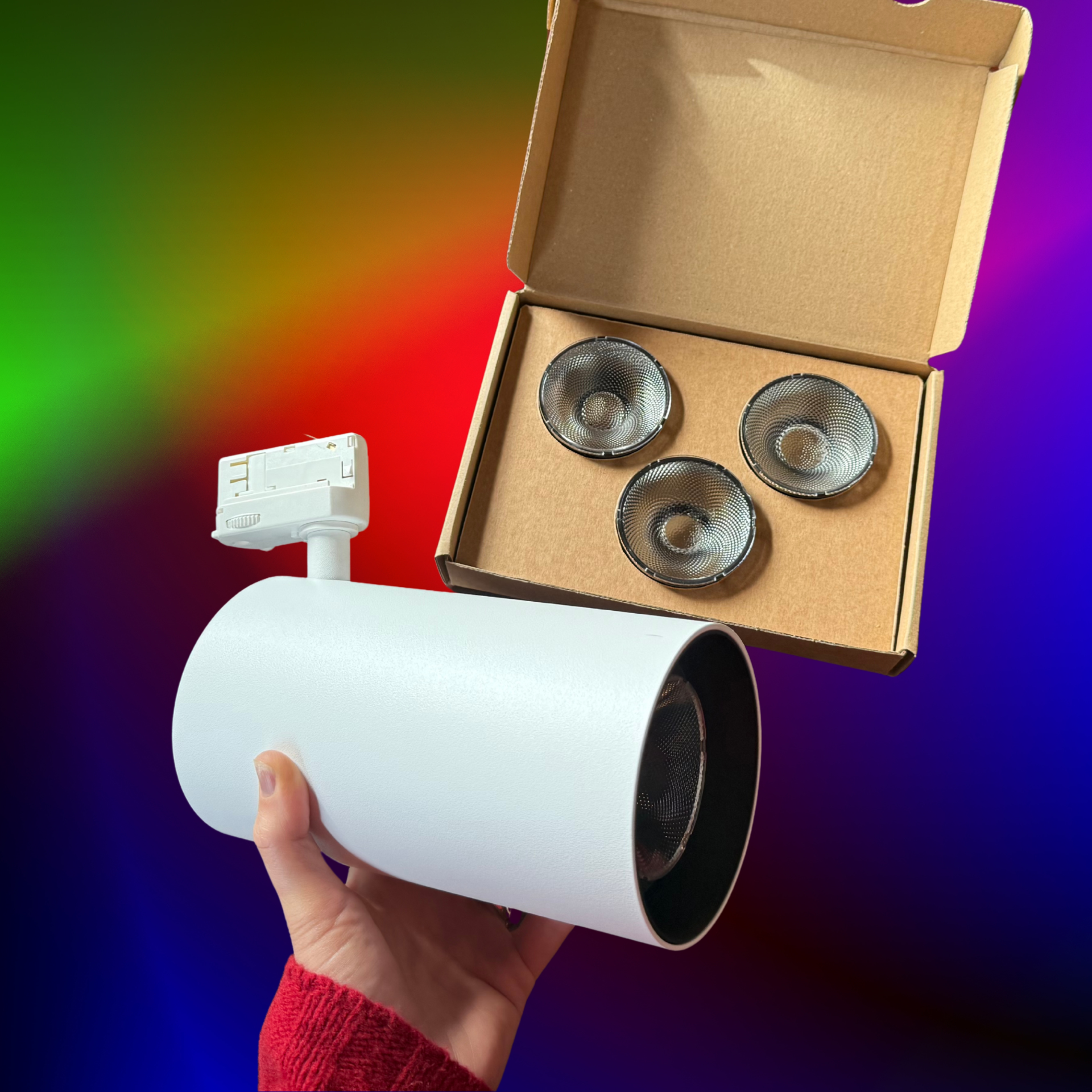 An elegant, easy-to-use, 16W RGBW(4K) 240V track spot in white.